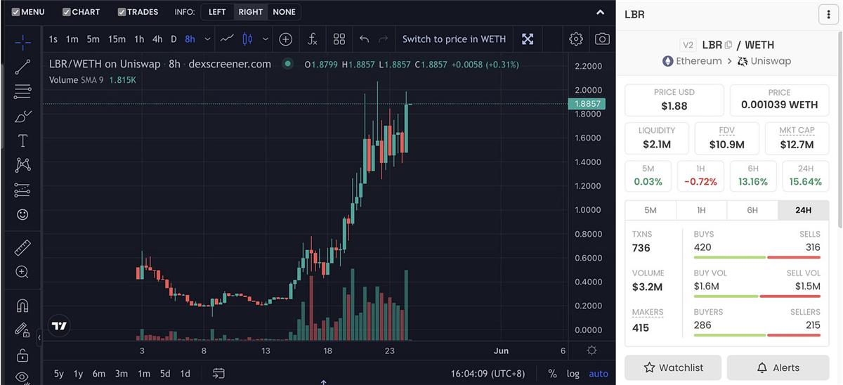 $LBR 一直在涨,我大概是0.1x卖掉的。快一个月时间,$LBR距离我卖出已经十倍,写这些东西的时候是1.8u左右。我觉得能涨这么多,离不开团队在token price和产品方面的努力。