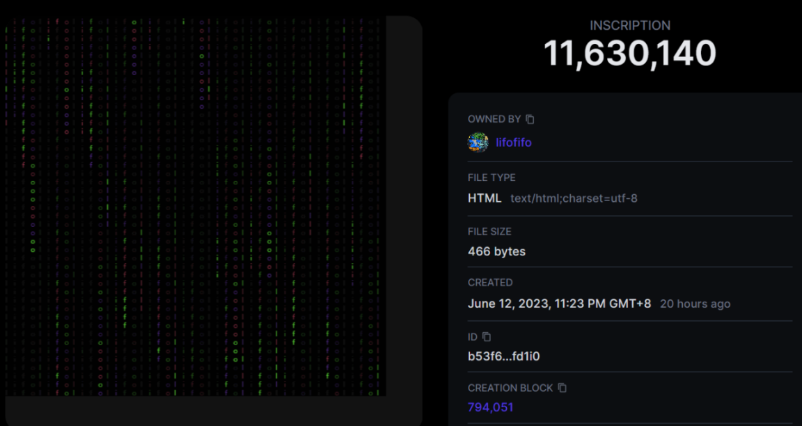 Ord.io:比特币铭文探索和发现平台 Ord.io 于 6 月 12 日正式支持递归铭文创建和显示。官方推特还惊讶称,有人已经用递归的方式,仅仅只用了 466 个字节就创建了该动态的艺术铭文。