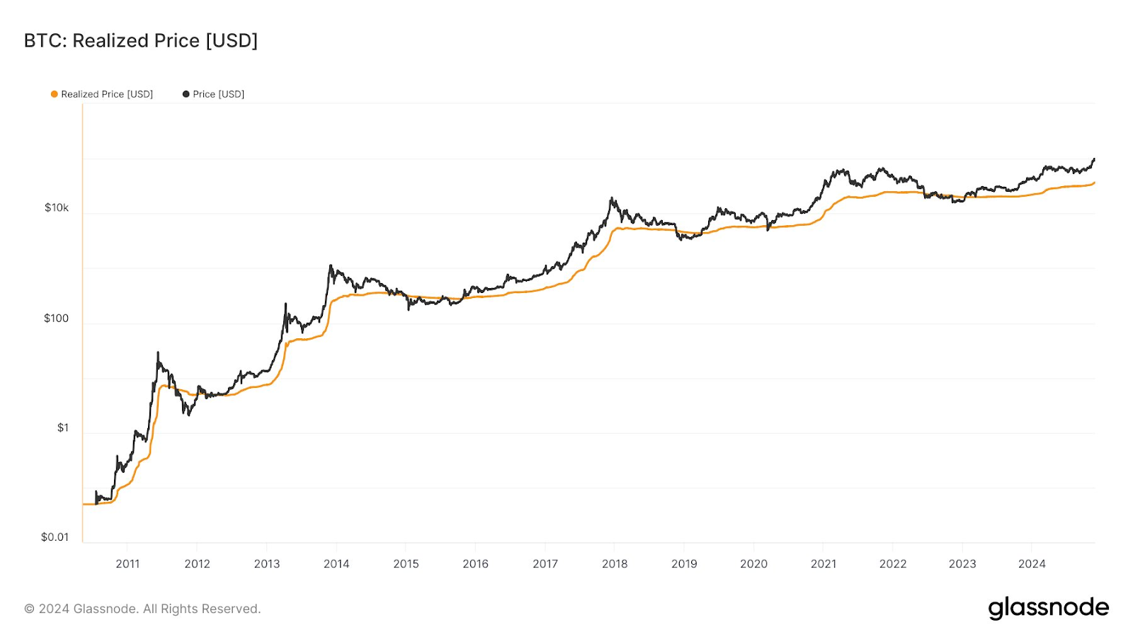 Realized Price 代表全市场持有 BTC 的平均成本。