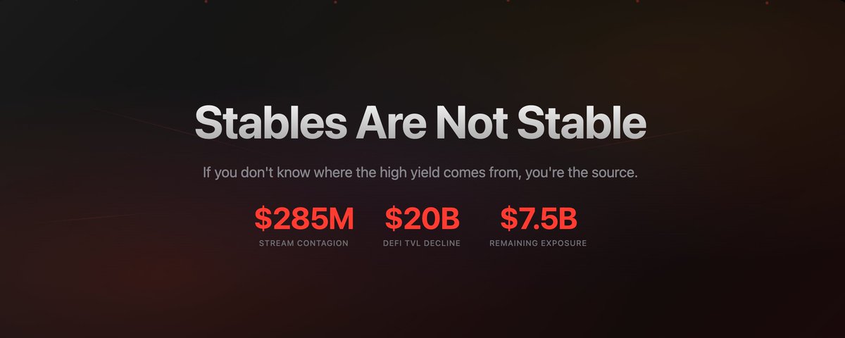 我在 Stream Finance 崩盘事件中观察到的,并非是对智能合约漏洞的精妙利用,也非传统意义上的预言机操纵攻击。相反它揭示了一个更令人不安的事实:在「去中心化」的华丽辞藻包裹下,基础的金融透明度已然缺失。当一名外部基金经理能在毫无有效监管的情况下亏损 9300 万美元,并引发高达 2.85 亿美元的跨协议连锁反应;当整个「稳定币」生态系统在一周内损失了 40% 至 50% 的总锁仓价值,尽管表面上仍维持着汇率挂钩,我们必须承认一个关于去中心化金融现状的基本事实:这个行业并未吸取任何教训。