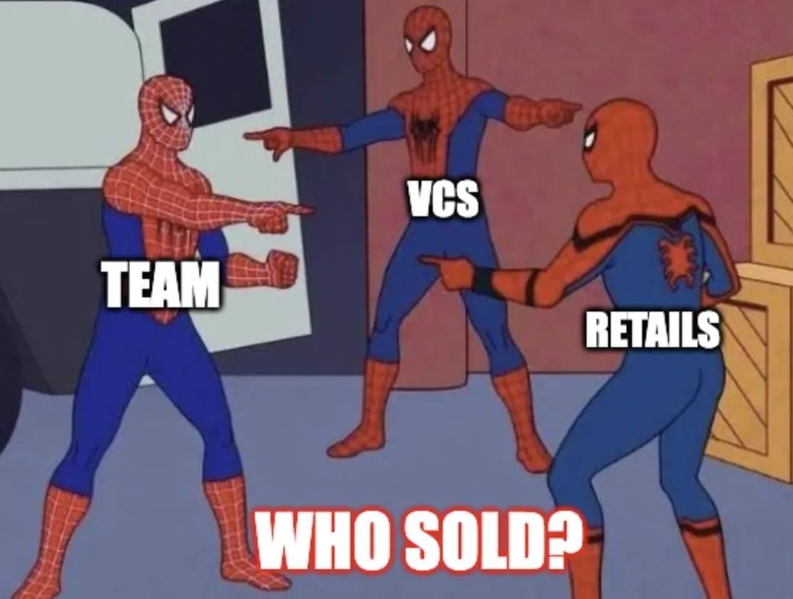 风险投资公司面临类似的情况。近期市场条件导致估值迅速且显著上升,种子轮融资往往在前种子轮融资后仅六个月内进行,且估值是前者的三倍。在某些情况下,风险投资公司甚至同时进行多轮融资,为同一时间的投资提供不同的估值。因此,除非他们在 TGE 之前的最新阶段投资,否则许多风险投资公司即使考虑到二级市场的 50% 折扣,仍然发现自己处于显著盈利的状态。这种环境促使风险投资公司出售,以锁定其收益。此外,在当前市场环境下,风险投资基金的有限合伙人(LP)开始更加关注 DPI(已分配资本的分配)指标,这进一步激励风险投资公司实现回报,强化了在二级场外交易市场出售的趋势。