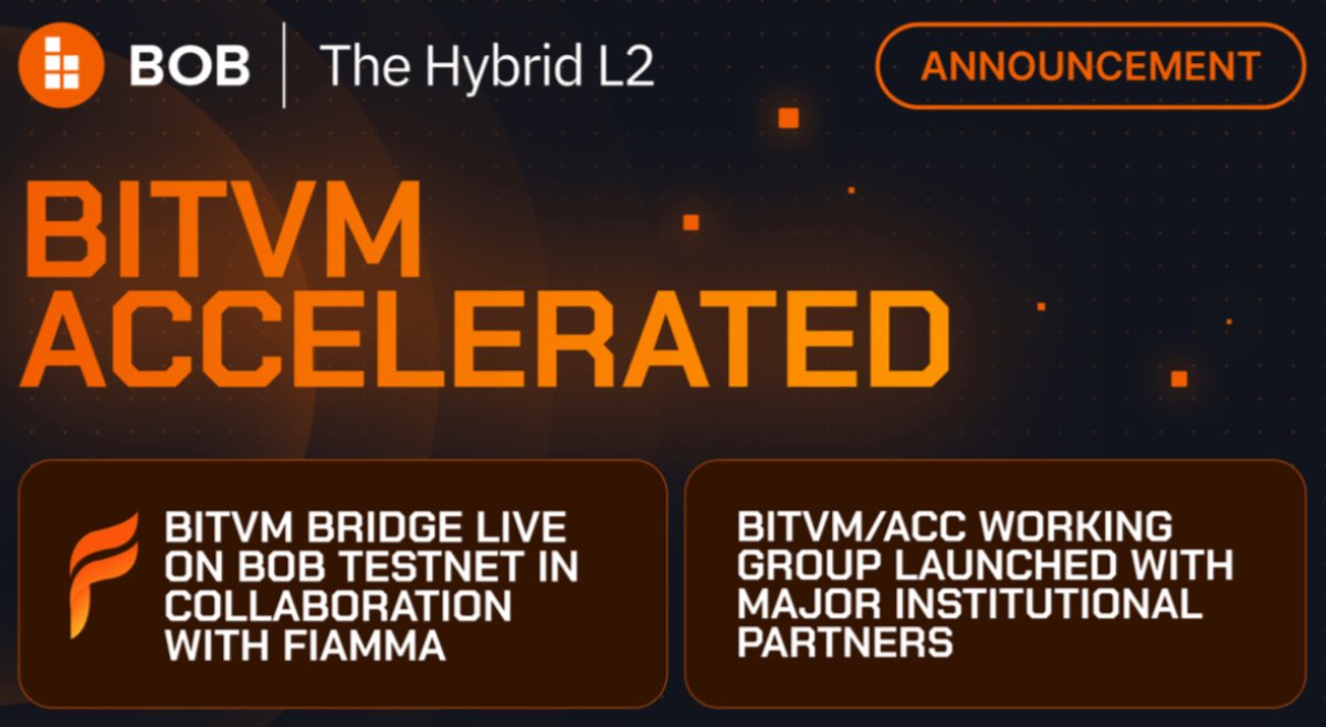 BOB 在公共测试网正式推出 BitVM 桥,并宣布与 ZeroSync、Babylon 等机构共同成立 BitVM 加速器