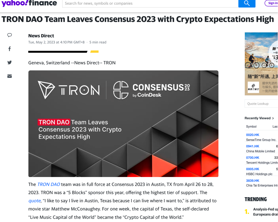 Consensus 2023 圆满落幕,TRON DAO 憧憬加密未来