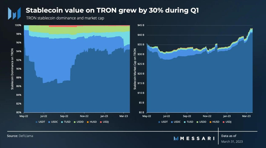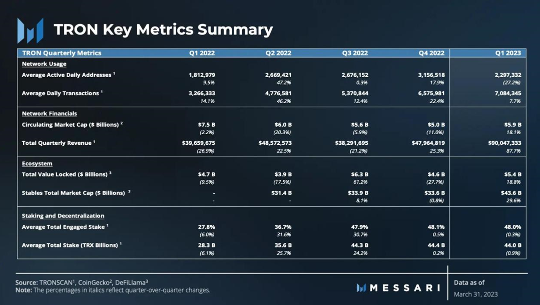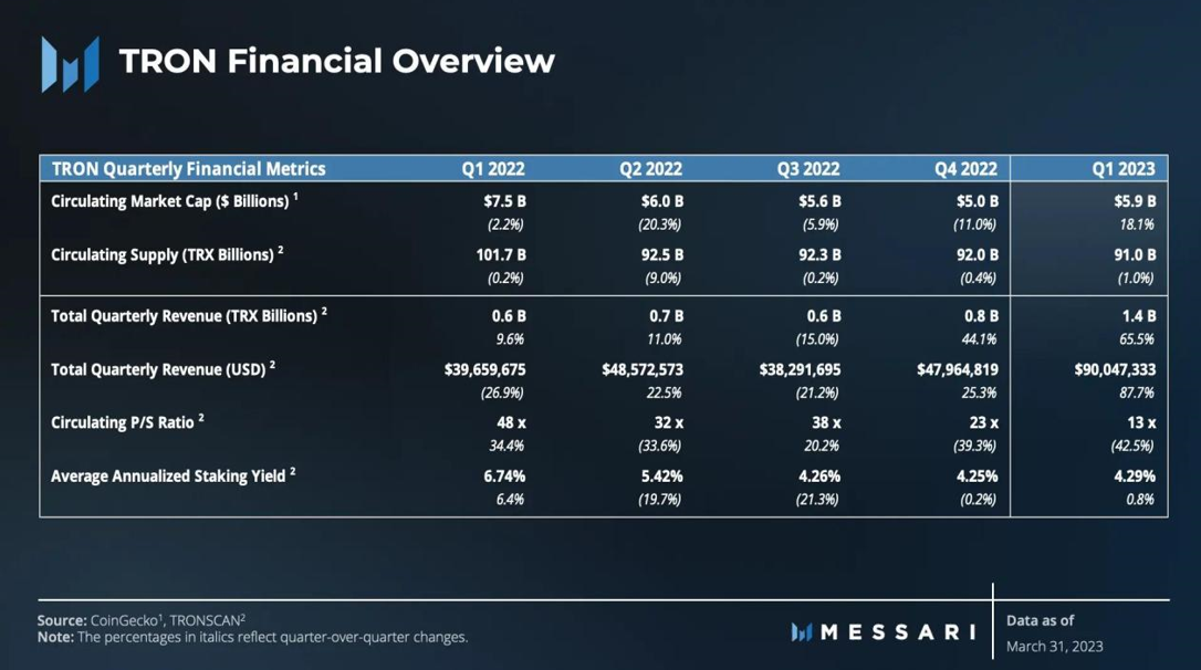 Messari:2023 年 Q1 TRON 市值环比上升18.8%,日均交易量增长 7.7%