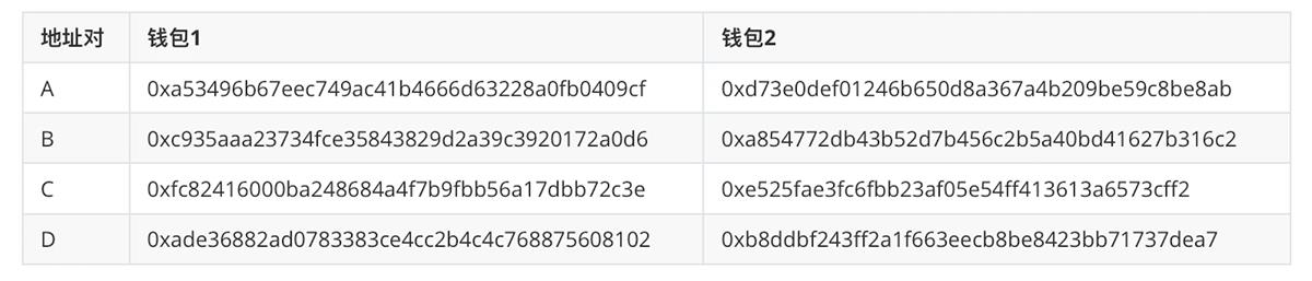 下面是地址对 A 和地址对 B 如何进行洗盘交易的逐步演示,这两对地址的资金来源都是 0xE2653d08d70cF47BCe18E3471bAB8ee6AA1E6EE2
