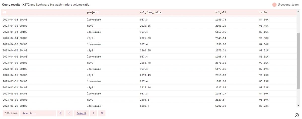 在所有通过X2Y2和 LooksRare 进行的交易中,约 90% 的交易量来自这四对钱包(不包括私人交易):