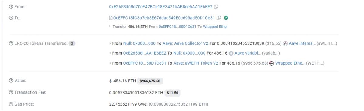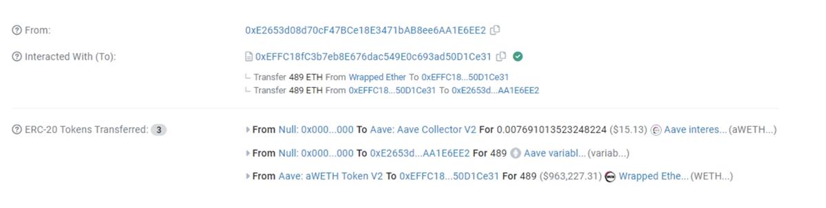 4. 交易完成后,这些地址会将 ETH 发送回0xE265 ,然后由0xE265 偿还 Aave 的贷款