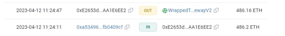 2. 然后0xE265 会将借来的 ETH 发送到四个地址中的任意一个