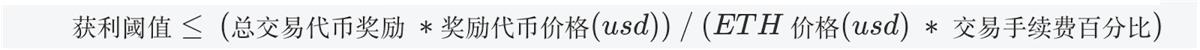 这个阈值每天都会随着奖励代币和 ETH 价格的波动而变化。但这里的关键是:只要该交易市场当天的总交易量低于这个阈值(不包括私人交易),每个交易者都能在当天通过交易挖矿获得收益。也就是说,交易奖励的收入会超过交易费用的成本。