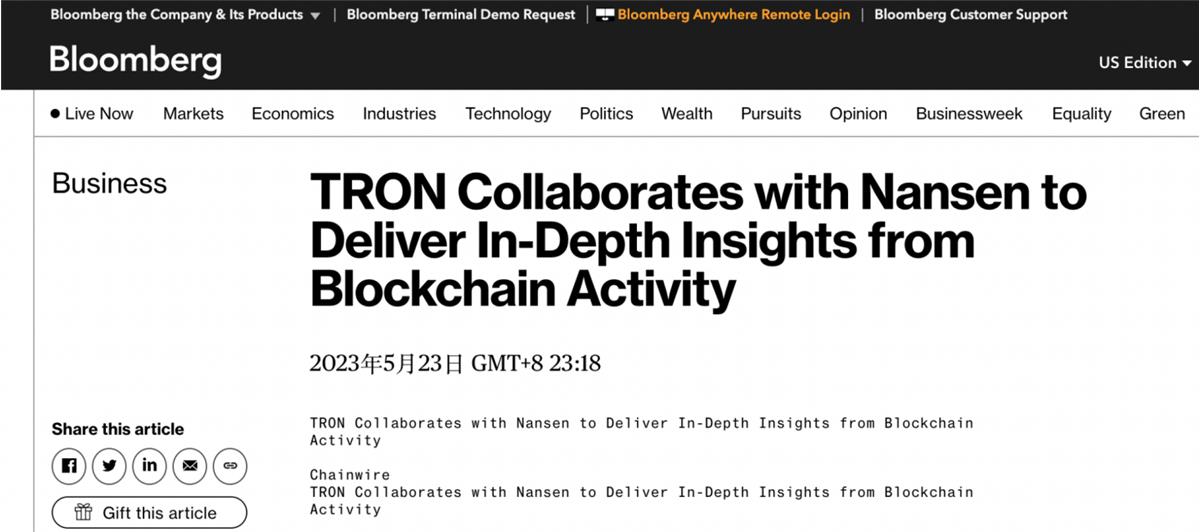 海外权威媒体聚焦波场 TRON 与 Nansen 合作新篇章