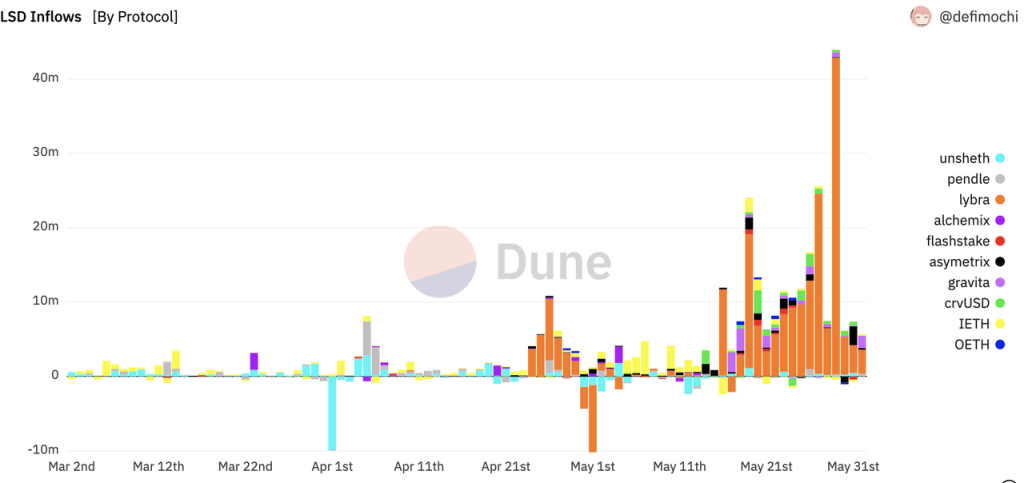 在Shapella升级之后,市场上出现了非常多的LSDfi的项目,他们的共同特征是吸引用户的LSD存款,进行各类金融应用。很多人认为我们将会遇到一个LSDfi summer。