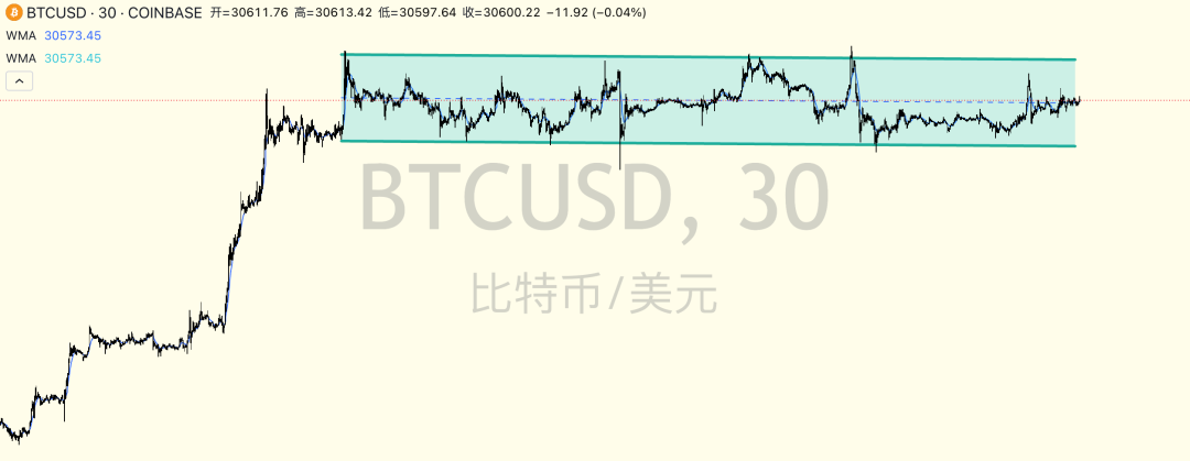 自传出贝莱德申请ETF消息比特币价格迎来了一波上涨后,当前BTC价格一直在30000—31000之间震荡。中期震荡时间超过20天,表明30000左右的买方与31000左右的卖方势力都很强劲。短期内,需要更关注比特币价格行为,震荡之后比特币价格的走势方向可能会因美国宏观CPI等数据带来等消息面刺激而逐渐明晰,比特币现货ETF能否通过也将是影响价格行为重要的消息。长期来看的话,在减半大背景下,按照既往的“惯例”,比特币似乎将迎来一次大牛市。