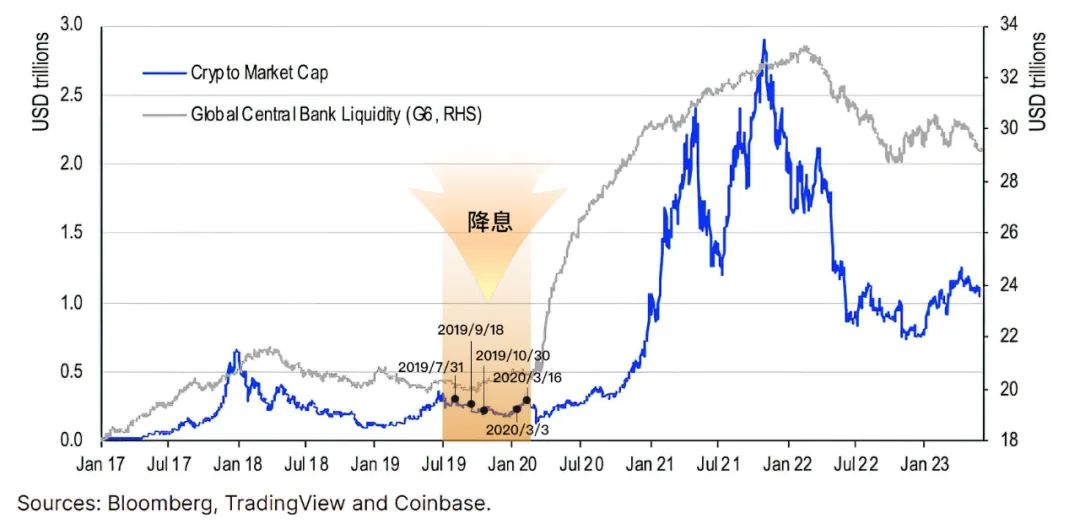 在2014年、2018年和2022年的熊市中,全球流动性紧缩导致资金从比特币市场流出,压低了比特币价格。